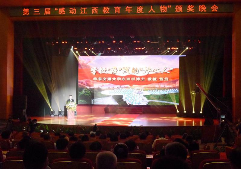9月7日,省委教育工委、省教育厅举行第三届“感动江西教育年度人物”颁奖晚会。省委常委、宣传部部长施小琳等出席并为获奖者颁奖。我校心理素质教育研究院常务副院长舒曼教授荣获第三届“感动江西教育年度人物”(总计10人,全省本科高校仅2人).,这是我校教师首次获此殊荣。校党委书记万明应邀出席颁奖晚会。