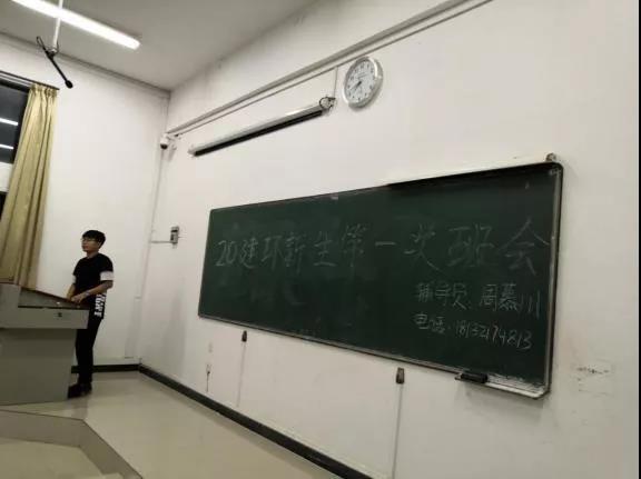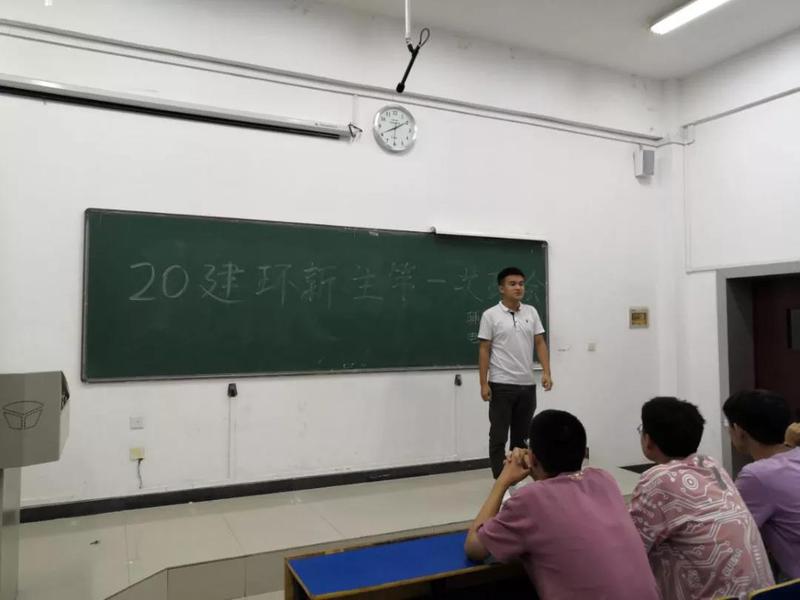 20级建筑环境与能源应用工程新生第一次班会于2020年9月13日开展。班会开始,辅导员周慕川老师对新生表示了欢迎,随后进行了自我介绍。周慕川老师既是20级建环新生的辅导员,同时也是建环专业16级的学长,因此,这场班会很快就形成了轻快融洽的氛围。