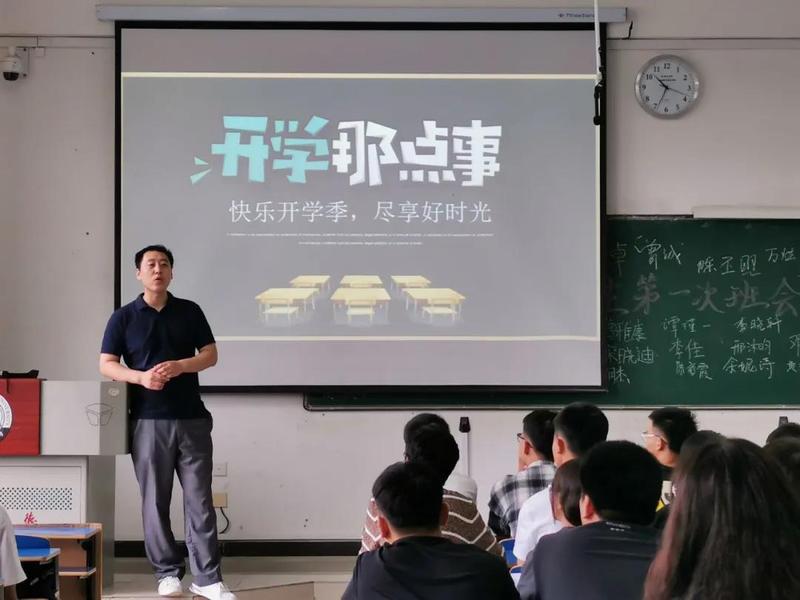 在新生入学班会开始前,带班党员龚友带动新生做自我介绍,相互认识后,刘伟老师用三个“新环境”为这次班会拉开序幕。