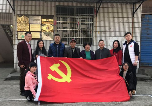 期间有一个特别小的细节,让我们铭记于心,当我们拿出党旗拍完合影的时候,两名老师激动的用右手握拳举到右耳,拍打着自己的胸口,何校长翻译到,两位教师是党员的时候,我们有些教师的眼角湿润了,两名60多岁的聋哑党员,就这样默默的为孩子的明天坚守着,这种精神是值得我们带到工作当中去的。