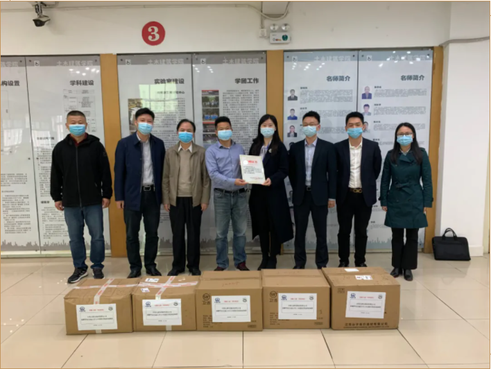 土建学院,捐赠防疫物资口罩10000只,用于复工复学。徐长节代表学院向中铁大桥局集团颁发捐赠证书,并对中铁大桥局在学生返校之际物资捐赠的善举表示赞赏和感谢!