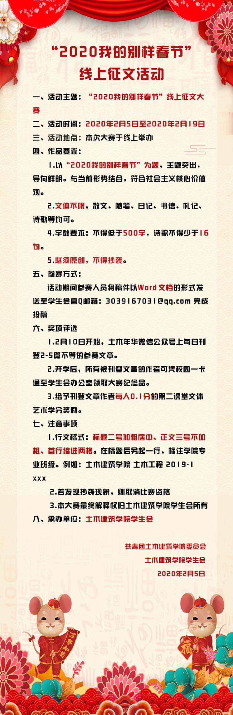 1.以“2020我的别样春节”为题,主题突出,导向鲜明。与当前形势结合,符合社会主义核心价值观。