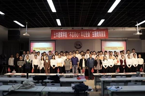 于天佑学堂举行“不忘初心,牢记使命”主题教育文艺展演。副校长,土建学院院长徐长节、院党委书记李立玲、副院长陈莘莘、学院办公室主任潘荣、学工办主任兼团委书记闫伟及党委组织员万雯怡应邀出席。